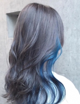 个性蓝灰染发发色图片