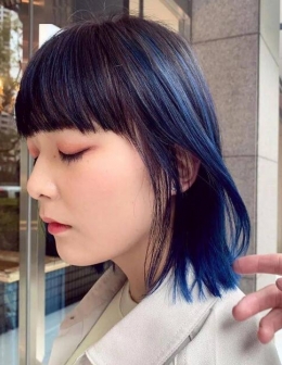 显白不挑人蓝黑色染发图片 不漂发直接染尽显冷艳气质